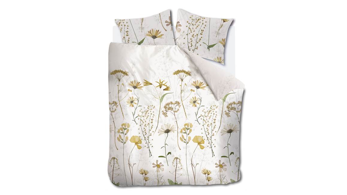 Onder het Ariadne at Home Blow flanel dekbedovertrek val je iedere avond heerlijk in slaap. Het gebroken witte dessin ie voorzien van een dromerige print van droogbloemen. De gouden en groene tinten waarvan gebruikt is gemaakt ogen fris en sfeervol. Op de achtergrond zijn schaduwen getekend van de bloemen, waardoor er een extra dimensie in de print ontstaat. De dubbelzijdige print loopt door op de bijbehorende kussenslopen.