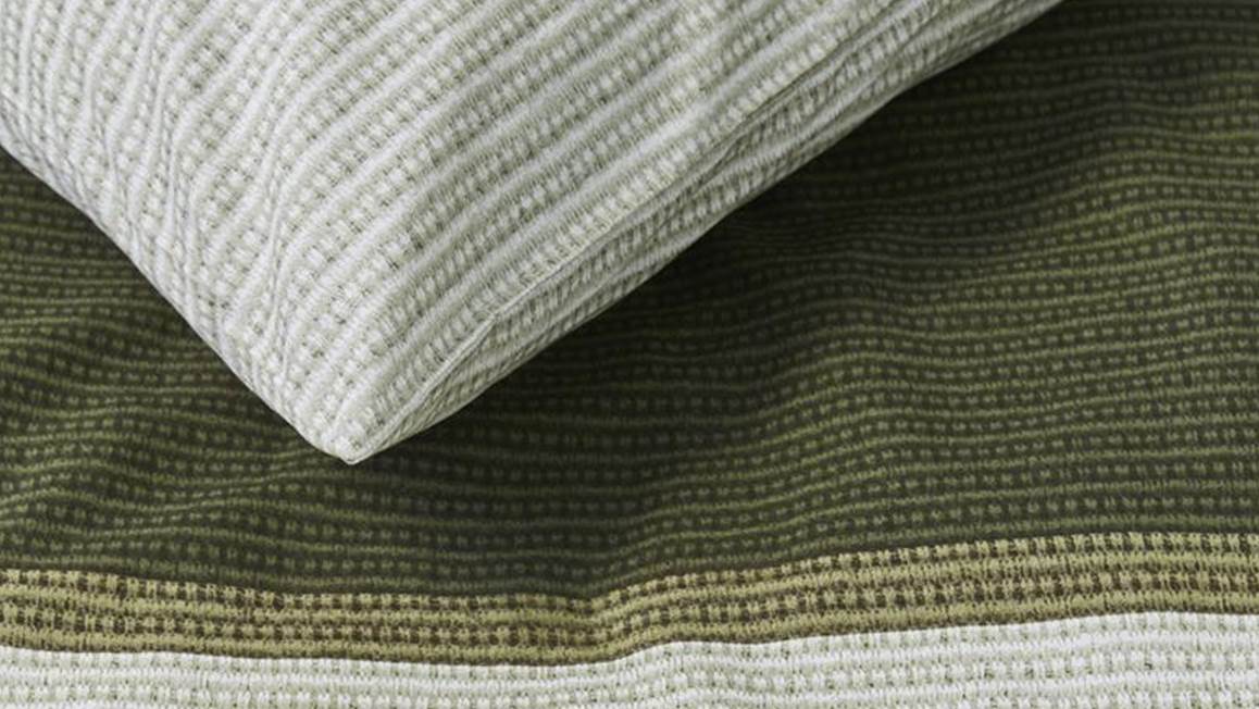 Het Beddinghouse Raya dekbedovertrek heeft een eigentijds ontwerp in zachte groen- en aardetinten. Het banendessin bestaat uit verschillende kleuren en weefstructuren. Voor de nodige diepte en het contrast volgen de donkere kleuren direct op de lichtere tinten. Daarnaast zijn de banen onevenredig en biedt het een speels effect. Het Raya dekbedovertrek oogt fris, modern en past in verschillende interieurstijlen. Van rustig en landelijk tot strak en modern. De print is aan beide zijden verwerkt, de kussenslopen hebben een effen bijpassende kleur.