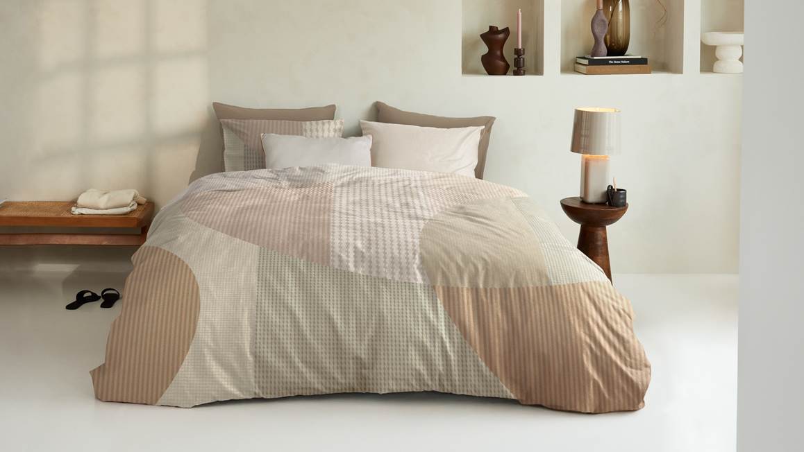 Ben jij een liefhebber van grafische prints? Dan mag het Tove dekbedovertrek van het bekende merk Beddinghouse niet ontbreken in jouw slaapkamer. Het ontwerp combineert verschillende structuren en organische vormen, waardoor er een trendy en modern geheel ontstaat. Het kleurpalet van zachte rustgevende aardetinten helpt je om ontspannen in slaap te vallen. De achterzijde is effen zandkleurig. Het Tove dekbedovertrek is perfect te combineren in een minimalistische of Scandinavische slaapkamer.
