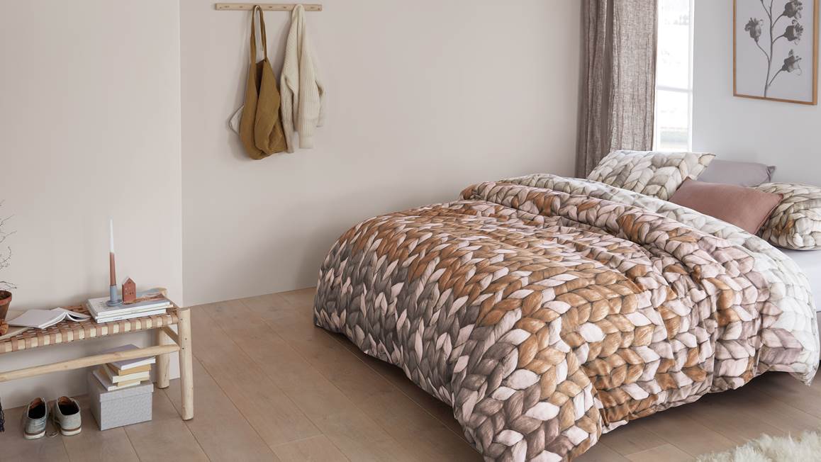 Met een dekbedovertrek met stoere breipatronen verander je jouw slaapkamer in een handomdraai in een knusse berghut. Recht, averecht, kabels, gerstekorrels, Scandinavische jacquardmotieven… de verschillende breisteken geven je overtrek een rustieke winterlook. Het neutrale kleurenpalet van vergrijsde tinten beige, blauw en bruin geven het geheel de authentieke charme die zo kenmerkend is voor een landelijk interieur. Deze dekbedovertrekken met winterprint toveren jouw slaapvertrek om tot een warme cocon. Stapels mooie en zachte kussens op je bed, een warme schapenvacht op de vloer: laat de winter maar komen!