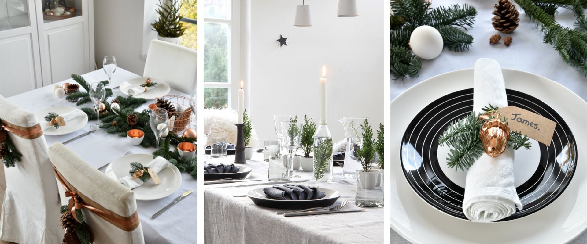 Wil je de Scandinavische woonstijl in je woonkamer doortrekken naar de eettafel? Stijl dan je kersttafel met veel wit en stoere elementen, zoals koper of zilver accenten. Dek de tafel met een elegant wit tafelkleed en zet je zwart-witte servies op tafel. De zwarte details in het servies zorgen voor een stoere touch. Het mooiste effect krijg je door het stapelen van borden en het werken met laagjes. Maak het af met mooie kerstdecoratie, zoals koperkleurige kerstballen, eikeltjes, linten en naamkaartjes en tot slot wat kerstgroen.
