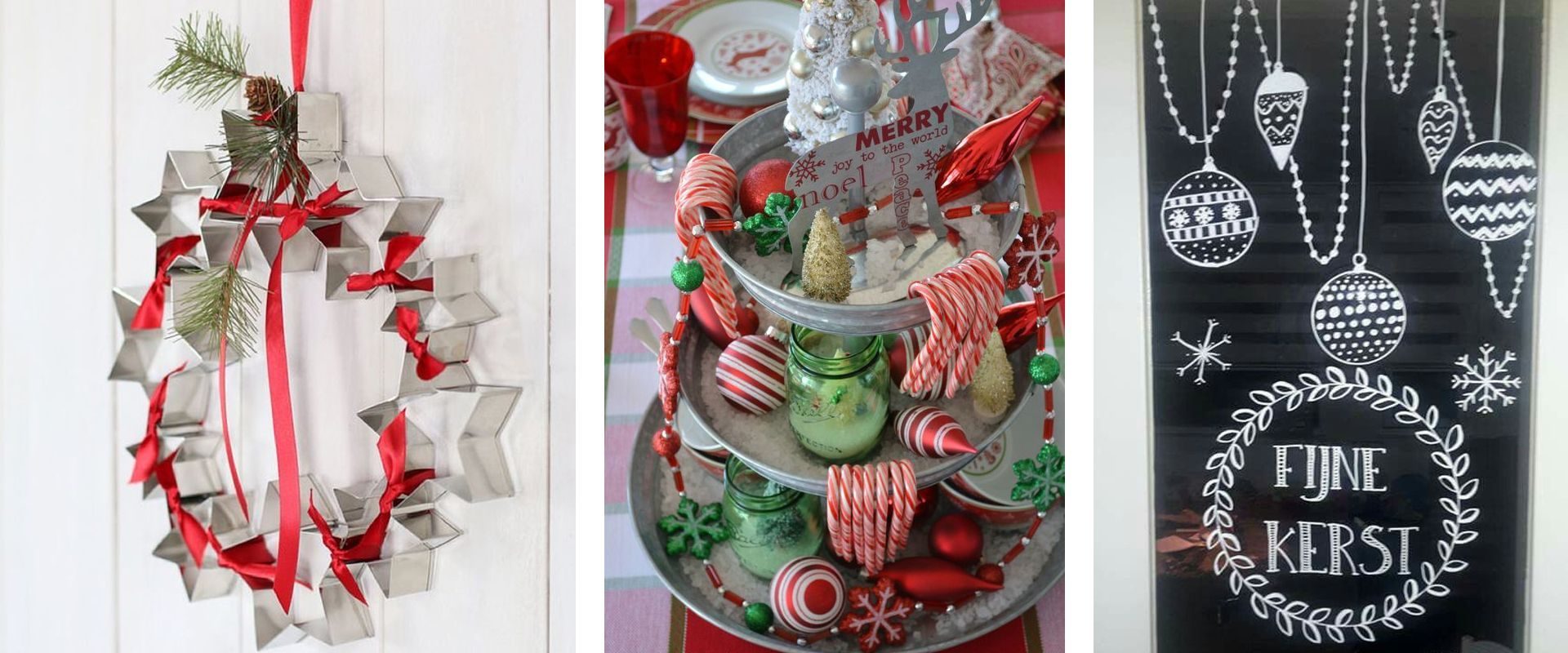 Heb je een etagère in huis? Leg hier dan candy canes (kerst zuurstokjes), kerstkransjes en andere lekkernijen op. Versier de etagère eventueel met klein kerstservies of kerstgroen. Daarnaast heb je als keukenprins of -prinses vast nog wel wat bakvormpjes over. Maak een mooie kerstkrans van kleine bakvormsterretjes door ze met rood of goud lint aan elkaar te knopen. Voeg wat kerstgroen toe en hang ze op aan je keukenkastjes. Zo eenvoudig, maar een echte eyecatcher!