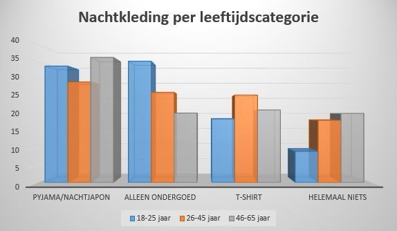 Ondanks dat naakt slapen vele voordelen heeft, verliest het aan populariteit. Uit het onderzoek blijkt dat steeds minder jongeren zonder kleding slapen. Binnen de categorie 46-65 jaar geeft 20% aan naakt te slapen, ten opzichte van 9% in de categorie 18-25 jaar. In plaats van naakt slapen kiezen jongeren steeds vaker om te slapen in hun ondergoed. Dat is met name populair bij mannen. Ruim 35% geeft daar de voorkeur aan. Bij vrouwen is de pyjama of de nachtjapon favoriet. Bijna de helft van de ondervraagde vrouwen draagt deze nachtkleding.