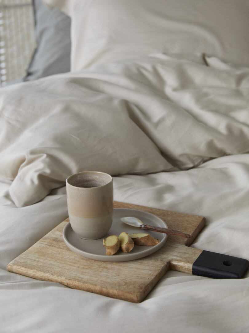 Een goede start om rust te creëren voor jezelf is door te starten met een slaapkamer die rust uitstraalt. Leg dat overtrek vol kleur en printjes even tijdelijk in de kast en vervang het met een effen overtrek in een zachte kleur. Aardetinten hebben bijvoorbeeld een rustgevende werking. Dat is precies wat je nodig hebt om de drukte van de dag los te kunnen laten.