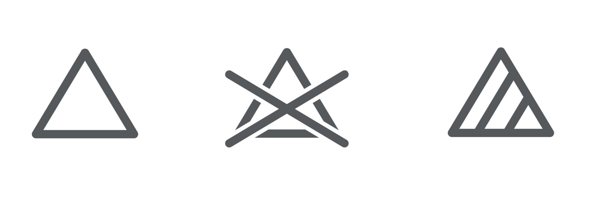 Een driehoekig symbool duidt op bleekmiddel. Bleekmiddel is te vinden in sommige wasmiddelen en vlekverwijderaars. Een leeg symbool betekent dat bleken is toegestaan, terwijl een symbool met strepen aangeeft dat je voorzichtig moet zijn met bleekmiddel. Een driehoekig symbool met kruis betekent dat bleken niet wordt aanbevolen.