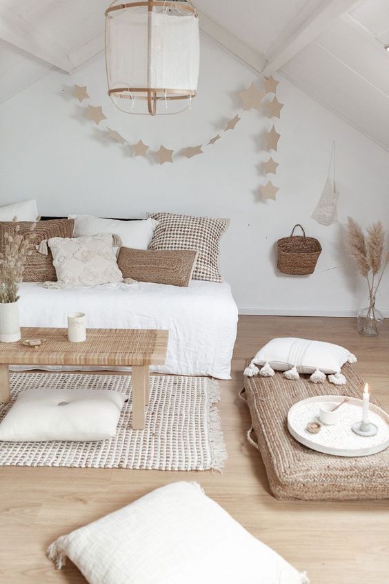 De strandstijl staat voor rust, vrijheid en ruimte. Dit zie je ook terug in het kleurgebruik bij deze woonstijl. Geef je slaapkamermuur een lichte kleur als wit, zand of lichtblauw omdat deze kleuren doen denken aan de zee, de duinen en strandhuisjes. Bijkomend voordeel is dat wit en andere lichte kleuren je slaapplek ruimer en groter doen lijken. Liever niet verven? Je kunt die summervibes ook naar binnen halen door middel van een behangetje op een wandpaneel of dekbedovertrek. Kies hierbij voor een mooie palmbomen print, dessin van de kust of de kleuren van de zee, et voilà!