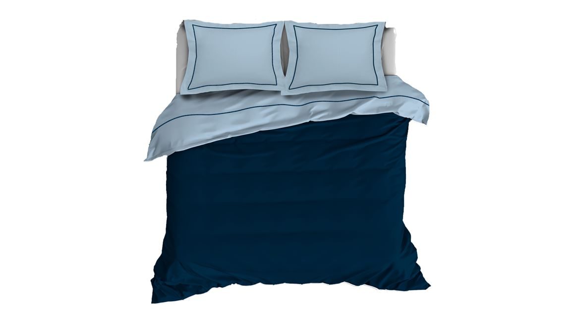 Het Bumblebee dekbedovertrek van het merk De Witte Lietaer is een luxueuze en frisse toevoeging aan jouw slaapkamer. Dit komt door de kleurencombinatie van lichtblauw en marineblauw. Doordat beide zijden voorzien zijn van een andere kleur is het overtrek aan twee zijden te gebruiken! Het overtrek en de bijpassende kussenslopen zijn versierd met een gekleurde bies. De kussenslopen hebben bovendien een elegante Oxford rand.