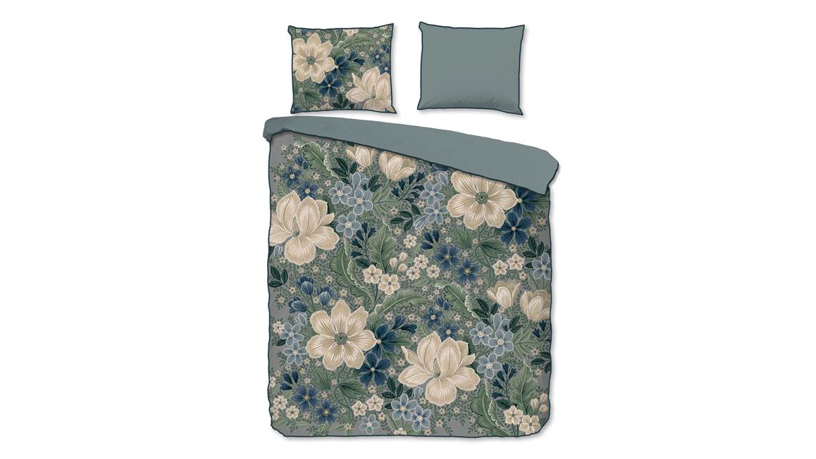 Geef jouw slaapkamer een sfeervolle uitstraling met het Descanso Alessia dekbedovertrek. Op het groene overtrek staan verschillende grote bloemen afgebeeld. Deze zijn erg gedetailleerd getekend, waardoor het er nog luxer uitziet. Met de effen achterzijde maak je een stijlvolle omslag die het plaatje helemaal compleet maakt. Het overtrek en de bijbehorende kussenslopen zijn afgewerkt met een chique bies.