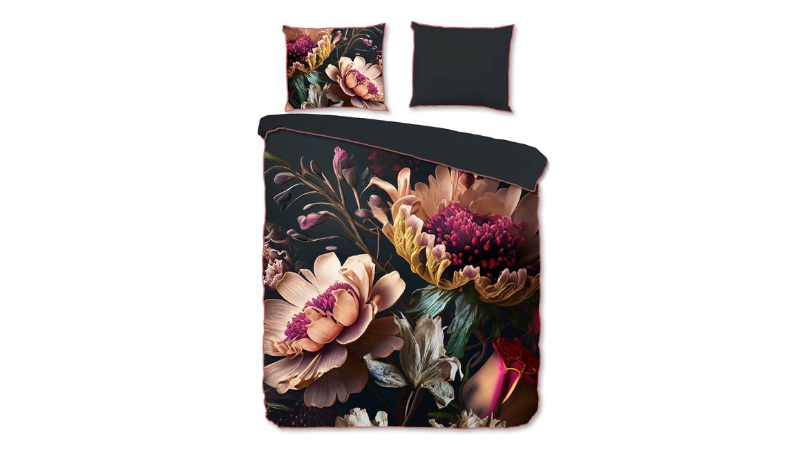 Geef jouw slaapkamer een luxe uitstraling met het Descanso Straizo dekbedovertrek. Het antracietkleurige dessin is voorzien van een prachtige bloemenprint. Door de schaduwen en glanzende accenten komt het ontwerp echt tot leven. zo kun je de bloemen haast al ruiken en val je net wat rustiger in slaap. De achterzijde is effen van kleur. Voor een extra stijlvol accent is het overtrek afgewerkt met een luxe contrasterende bies.