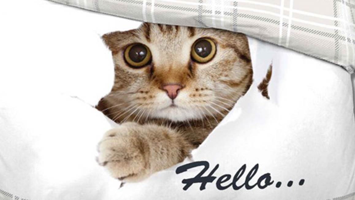 Het Hello Cat dekbedovertrek is voorzien van een schattig dessin met een kat. De kat kijkt je lief aan vanaf het witte deel van het overtrek. Daaromheen zit een mooie strook met een grijs ruitje. Het overtrek is omkeerbaar en heeft hetzelfde ruitjespatroon aan de binnenzijde. Ook de meegeleverde kussensloop bestaat uit twee verschillende kanten: een witte kant met de kattenprint en een geruite kant met de tekst 'Hello' groot in het midden.