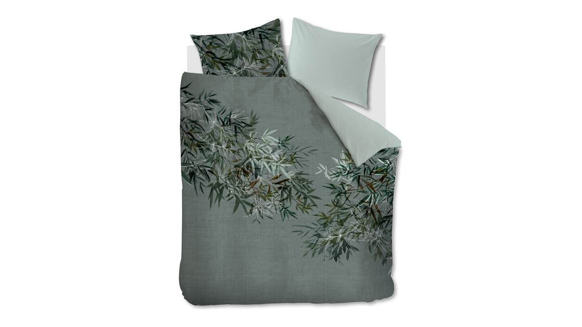 Het stijlvolle dessin van het Rivièra Maison Fargesia dekbedovertrek heeft een botanisch tintje. Het overtrek heeft een print van bamboetakken in verschillende groen- en bruintinten op een mooie, subtiel gestructureerde ondergrond. De bijzondere vergrijsd groene tint zorgt voor een chique, uitnodigende sfeer in de slaapkamer. Het is een waar plaatje om te zien. De achterkant van het dekbedovertrek heeft een lichtgroene kleur.