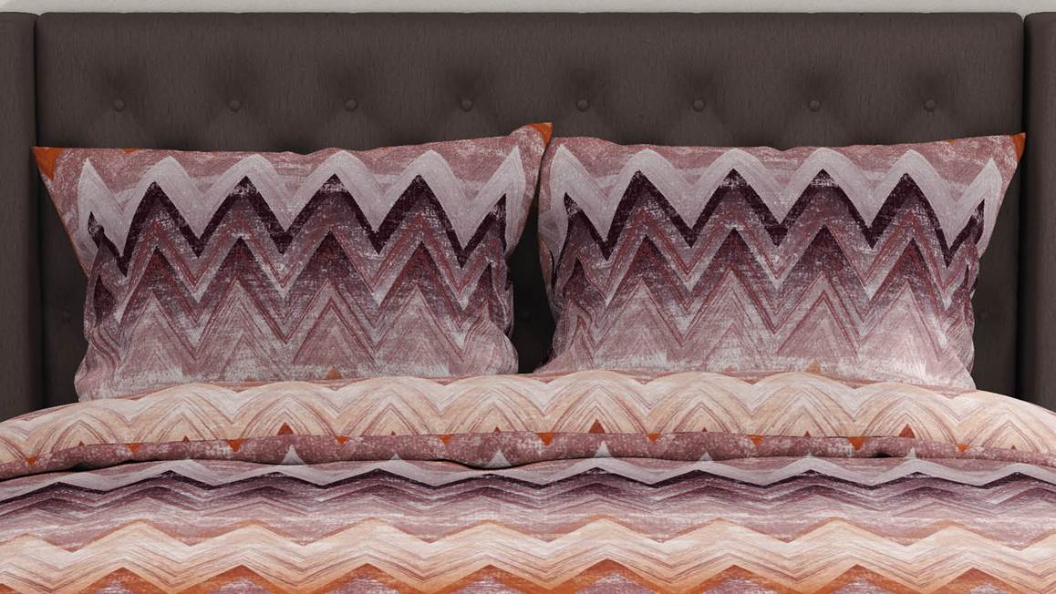 Het grafische dessin van het Kiruna dekbedovertrek creëert een warme uitstraling in je slaapkamer. De diverse bruine en terratinten vormen een patroon met zigzag lijnen. Het Romanette overtrek past geweldig in de wereldse slaapkamer en zorgt voor een mooi kleuraccent. De bijpassende kussenslopen worden standaard meegeleverd.