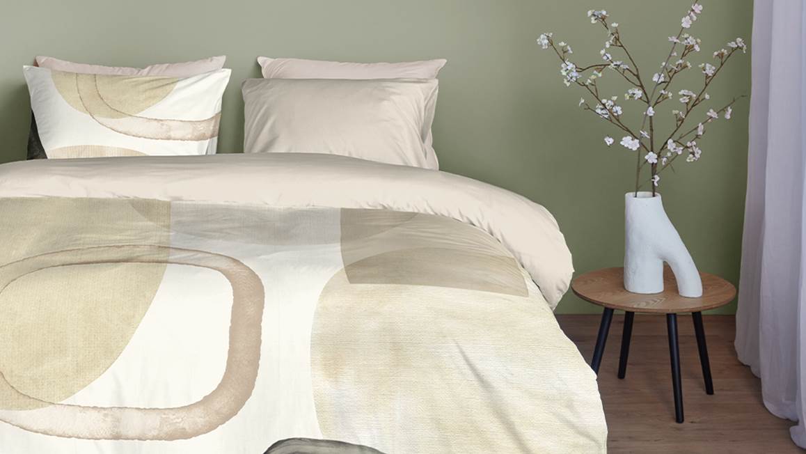 Creëer een oase van rust in de slaapkamer met het Moxie dekbedovertrek van het merk Snoozing. Grafische vormen in zachte aardetinten helpen je iedere avond weer ontspannen in slaap vallen. De witte ondergrond laat het ontwerp fris ogen. De achterzijde van het overtrek is voorzien van een effen zandkleur. Hiermee maak je zo een luxe omslag of je wisselt af tussen beide prints. Met de bijbehorende kussenslopen die beide prints bevatten kun je leuk mixen en matchen.
