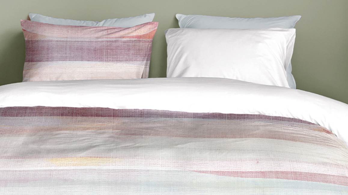 Geef jouw slaapkamer een vrolijke en kleurrijke touch met het Snoozing Wisp dekbedovertrek. Het ontwerp bestaat uit grafische strepen in zachte pasteltinten. Deze lopen over van roze naar lichtblauw. Doordat het net lijkt alsof ze met waterverf geschilderd zijn, ziet het geheel er erg artistiek uit. Met de effen witte achterzijde creëer je een strakke omslag. Ook kun je afwissel tussen beide prints voor een frisse Scandinavische look. De bijbehorende kussenslopen bevatten beide prints om de look compleet te maken.